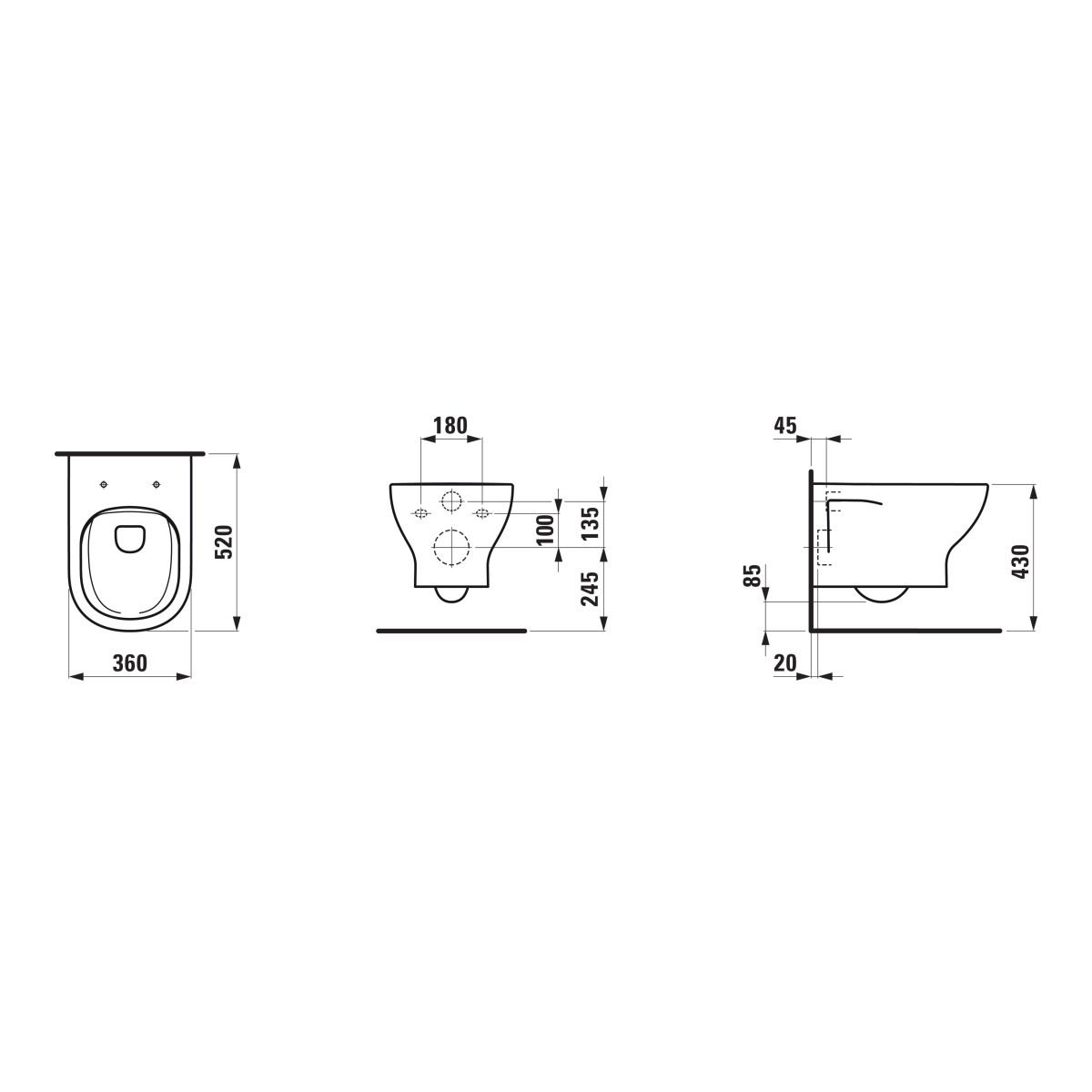 Laufen Lua vas wc agăţat fără margine alb lucios H8200810000001