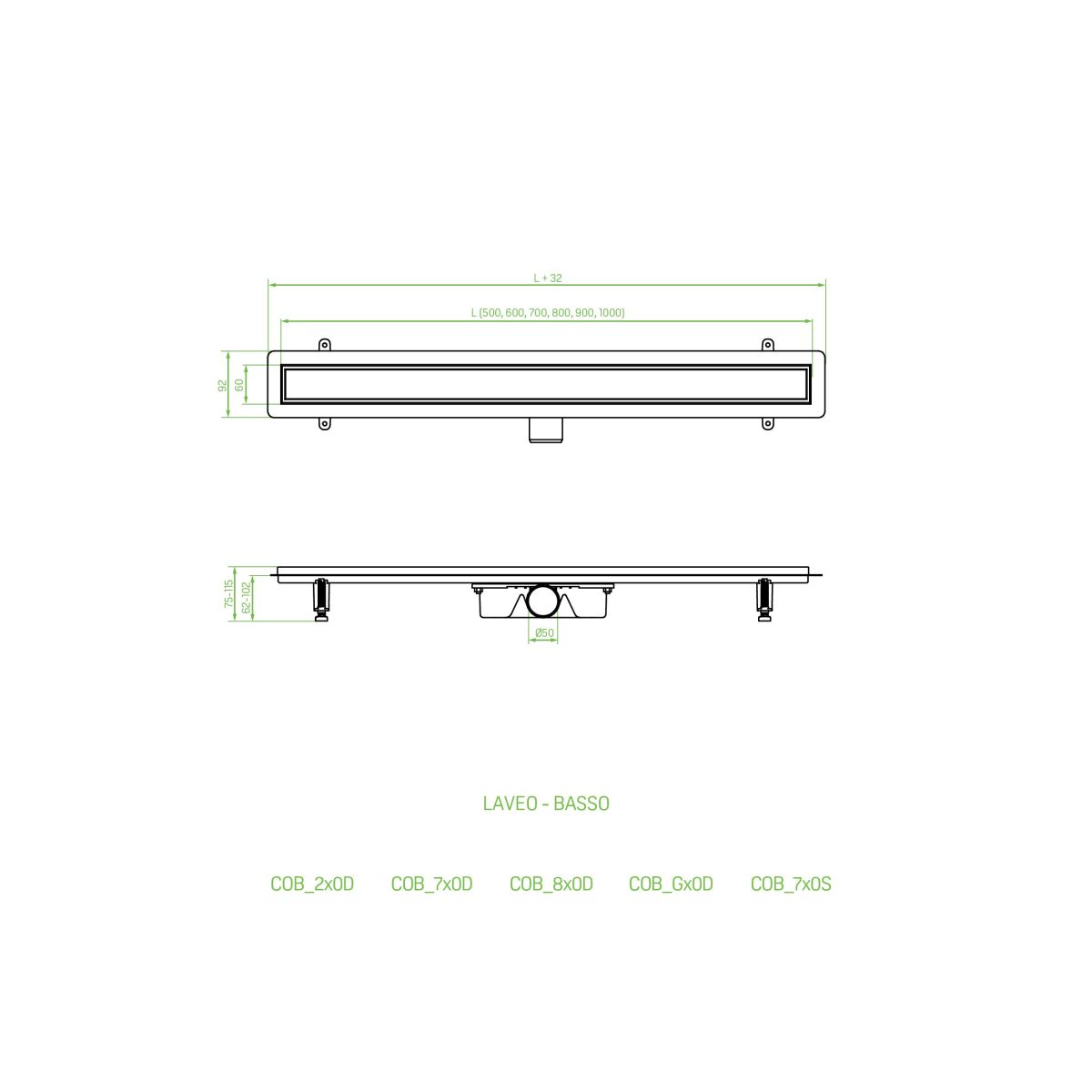 Laveo Basso rigolă liniară cu grătar 70 cm negru COB770D