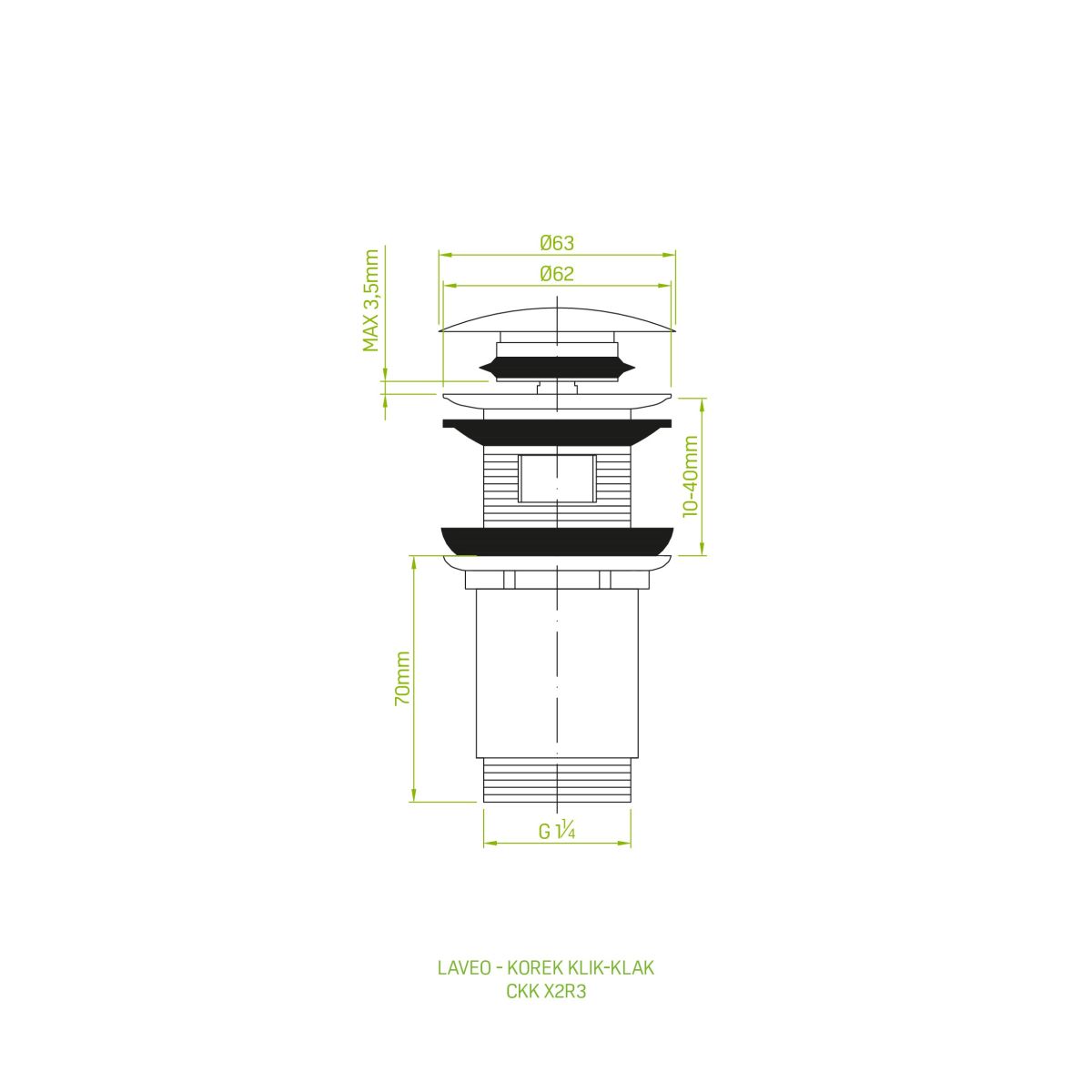 Dop de scurgere cu clic-clac, cu deversare și manșon pentru chiuvetă.