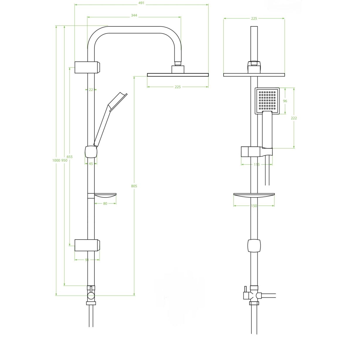 - Inclus: duș ploaie, duș de mână, furtun de duș, tija de duș