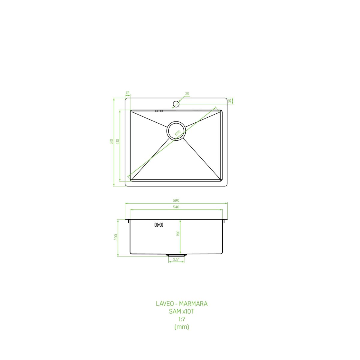 Laveo Marmara chiuveta din otel 59x51 cm SAM010T