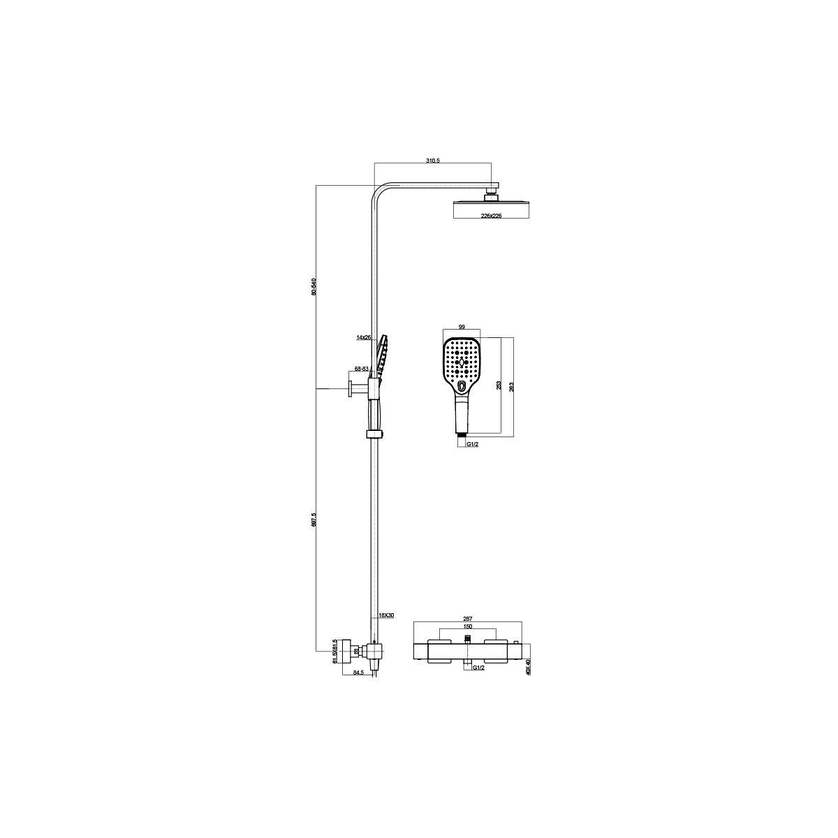 Inclus: baterie cu comutator, duș ploaie, duș de mână, furtun de duș, tija de duș