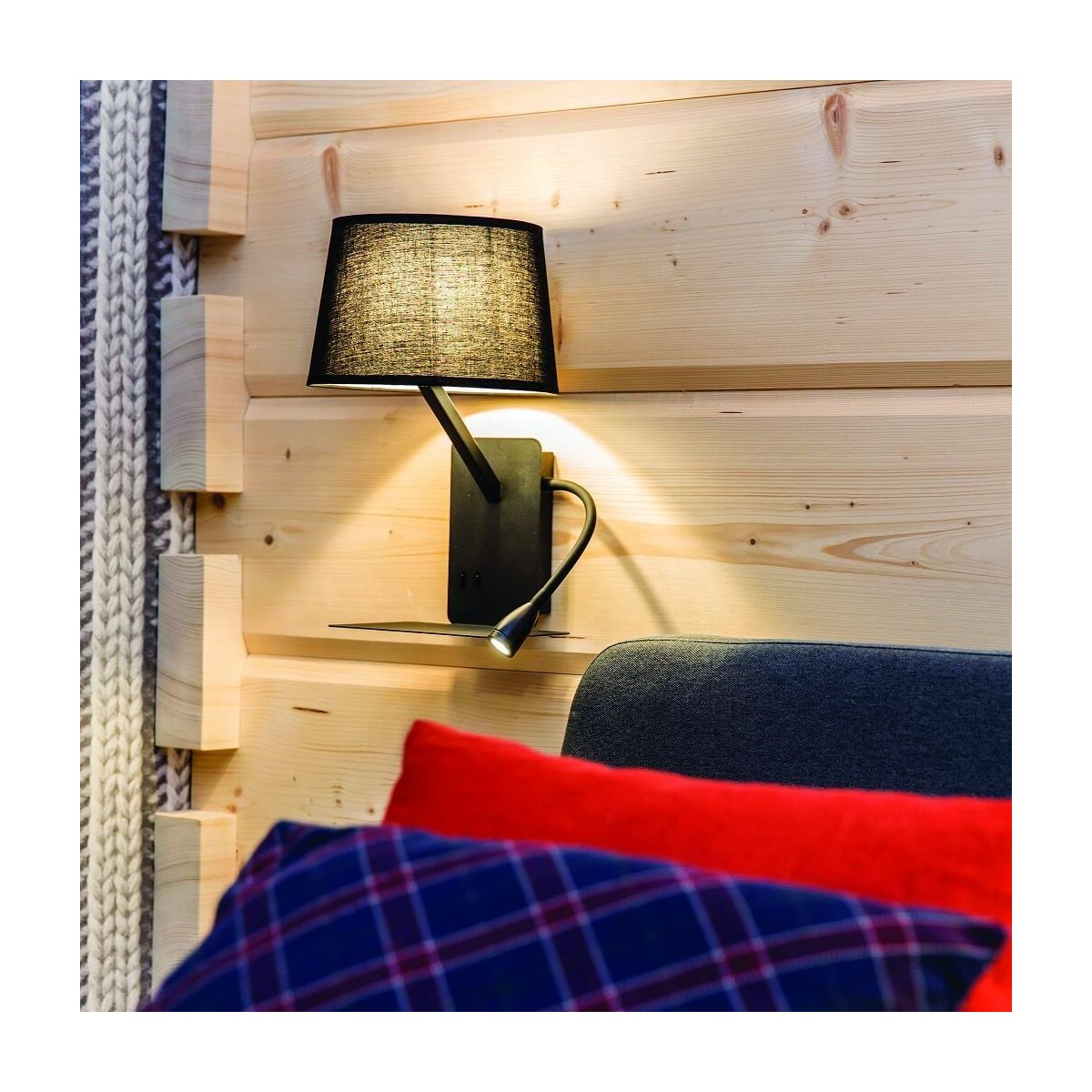 Lampa de perete Dakota este o soluție ideală pentru dormitor datorită raftului său, care poate înlocui cu siguranță o noptieră. Un avantaj suplimentar este a doua sursă de lumină pe brațul flexibil din silicon. Dakota nu înlocuiește doar o noptieră. Are un port USB, ceea ce face încărcarea smartphone-urilor mult mai convenabilă.