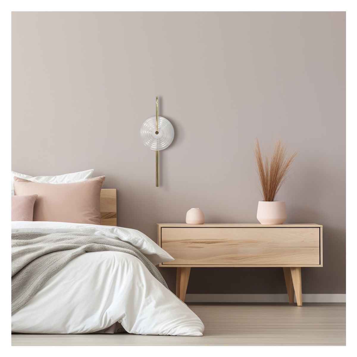 Lampa de perete Plato este o combinație unică de eleganță și design modern. Abajurul său din sticlă cu o structură subtil canelată îi conferă un caracter ușor și sofisticat, în timp ce detaliile metalice îi subliniază aspectul elegant. Lampa de perete Plato se potrivește perfect atât în designul interior modern, cât și în cel clasic. Modul neobișnuit în care este emisă lumina face ca Plato să se diferențieze de alte lămpi de perete. Sursa de lumină LED plasată în interior este îndreptată spre abajur, datorită căruia lumina nu cade direct pe mediul înconjurător, ci este reflectată subtil, creând o strălucire moale și difuză. Acest efect adaugă confort interiorului și evidențiază structura de sticlă.