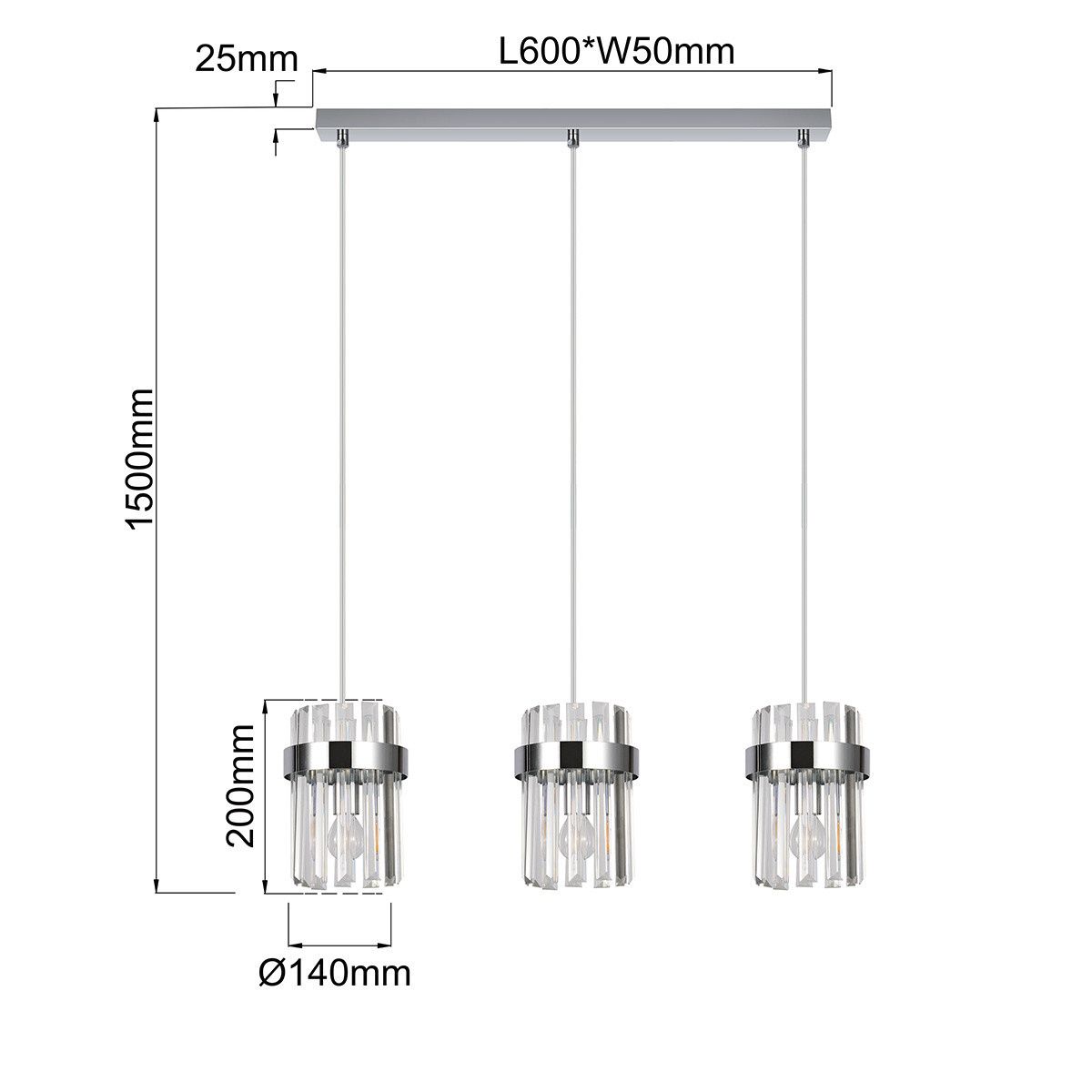 Sursă de lumină: Lampa este proiectată pentru trei becuri cu filet E14.