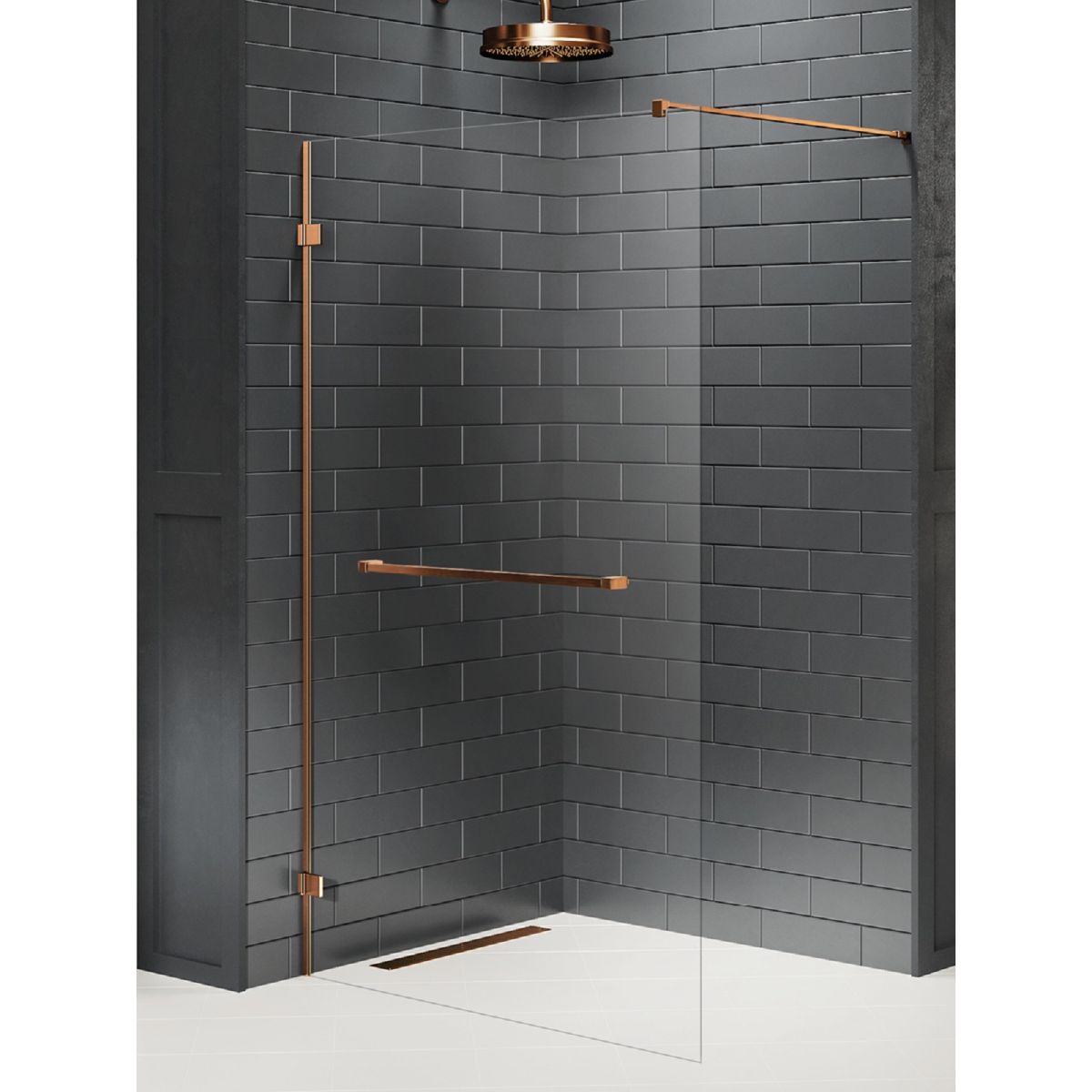 New Trendy Avexa Copper Brushed perete cabină de duș walk-in 150 cm cupru periat/sticla transparentă EXK-7174