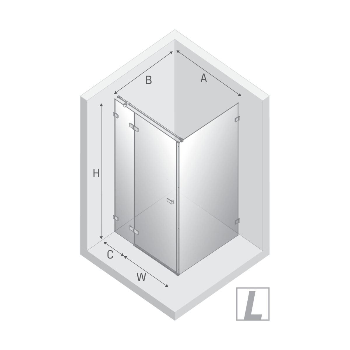 - lățimea ușii cu perete scurt (A): 89,2-90,2 cm