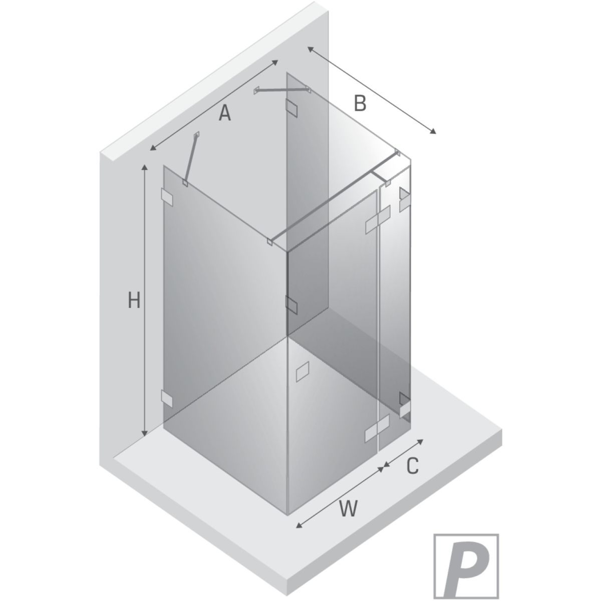 - lățimea ușii cu perete scurt (A): 121,2 cm