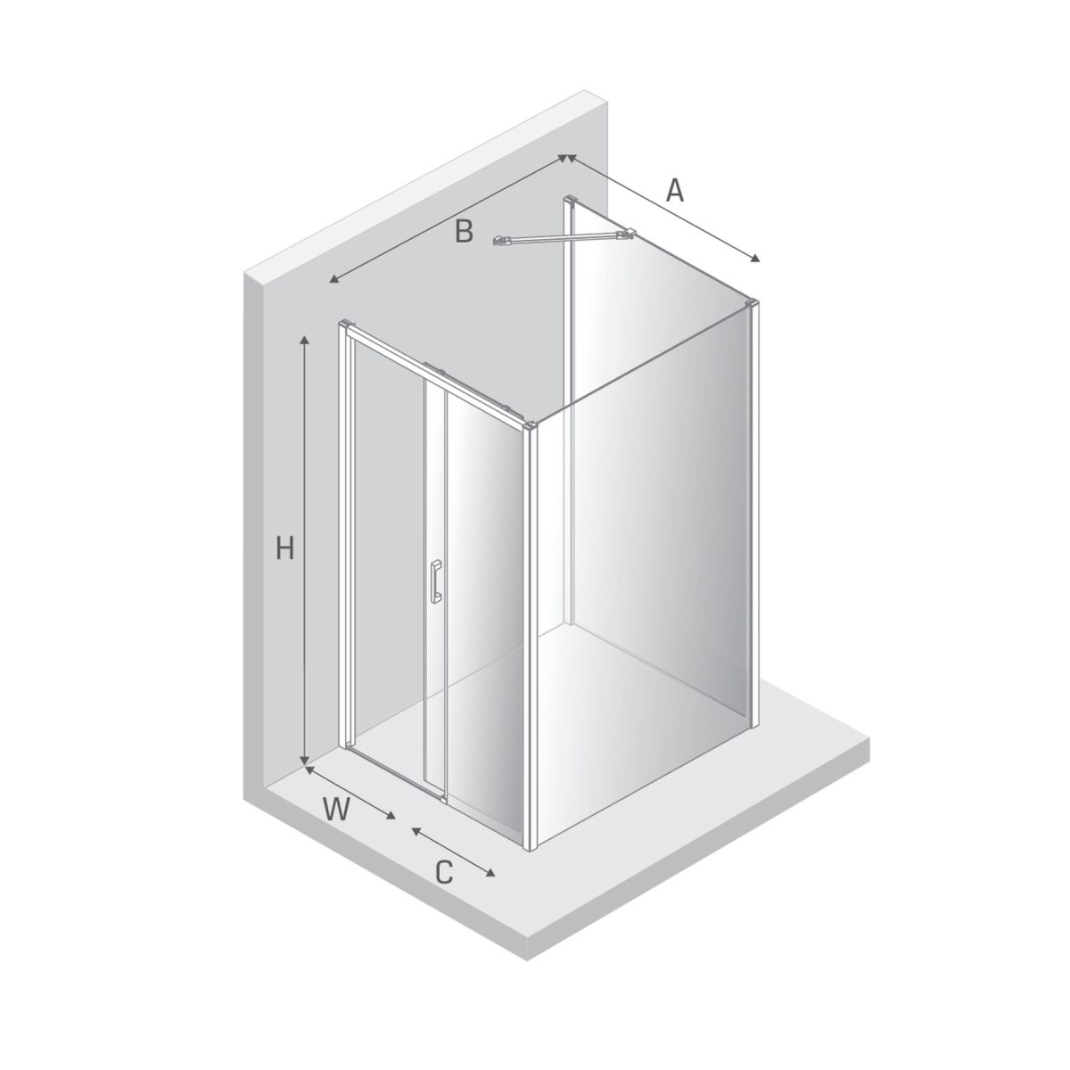 - lățimea peretelui fix (C): 44 cm