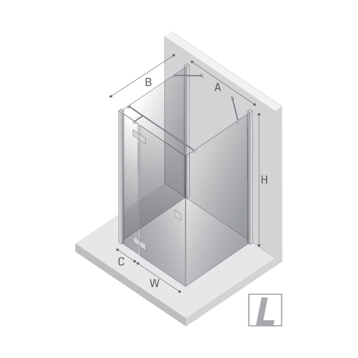 - lățimea peretelui fix (C): 34,5 cm