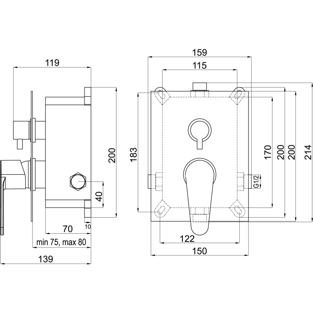 - lățimea produsului: 159 mm