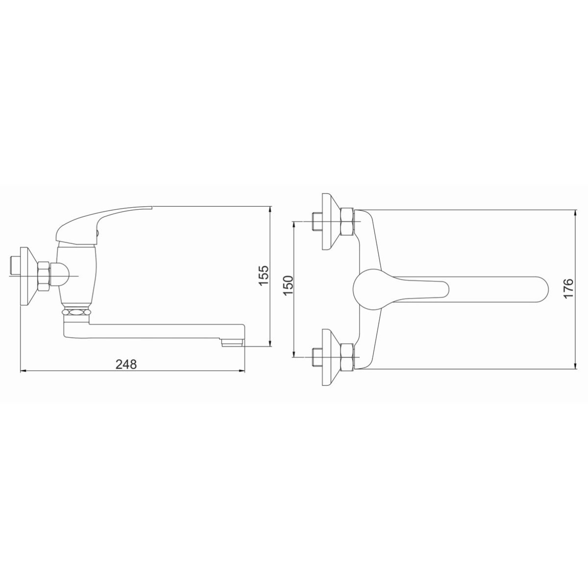 Cartuș ceramic de 35 mm de înaltă calitate și durabil, cu o garanție extinsă de 5 ani. Finisaj cromat premium. Mixer de chiuvetă montat pe perete cu distanța de 150 mm și braț pivotant elegant de 200 mm.
