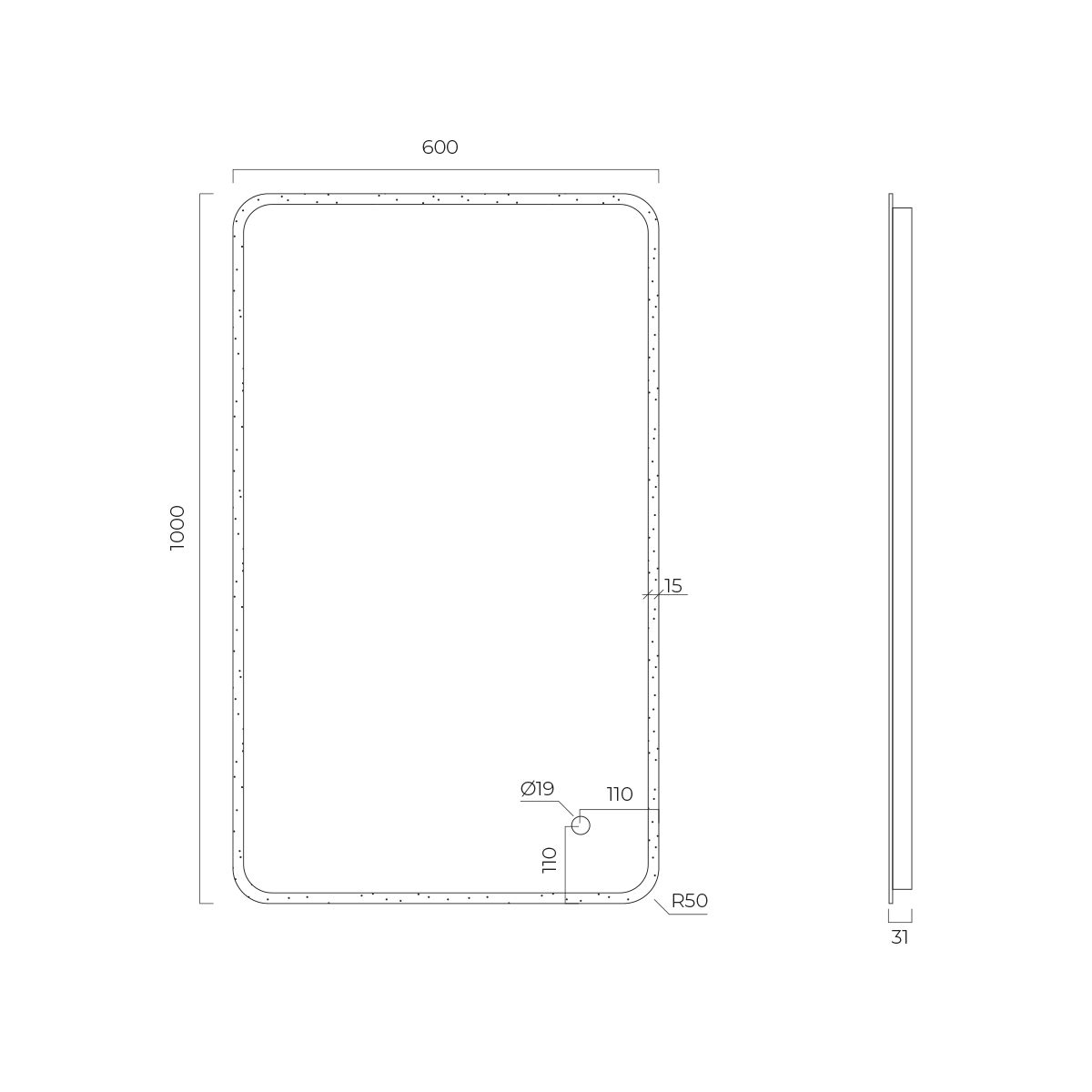 - iluminare sub forma unei benzi late de 1,5 cm pe partea din față a oglinzii