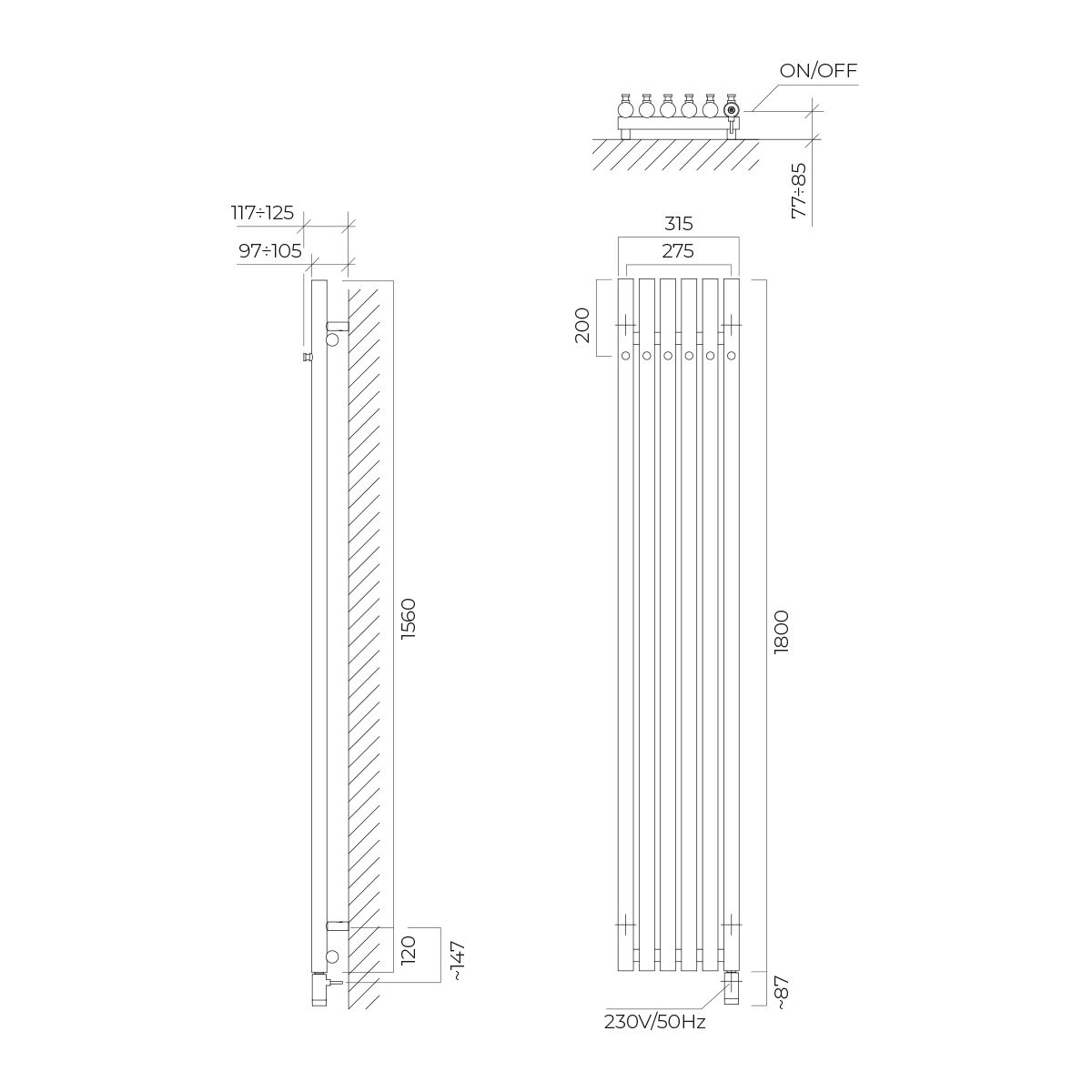 Oltens Stang (e) încălzitor electric 180x31.5 cm nichel 55118910