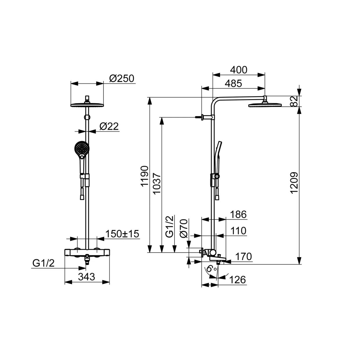 - Inclus: baterie cu comutator, duș de mână, furtun de duș, tija de duș