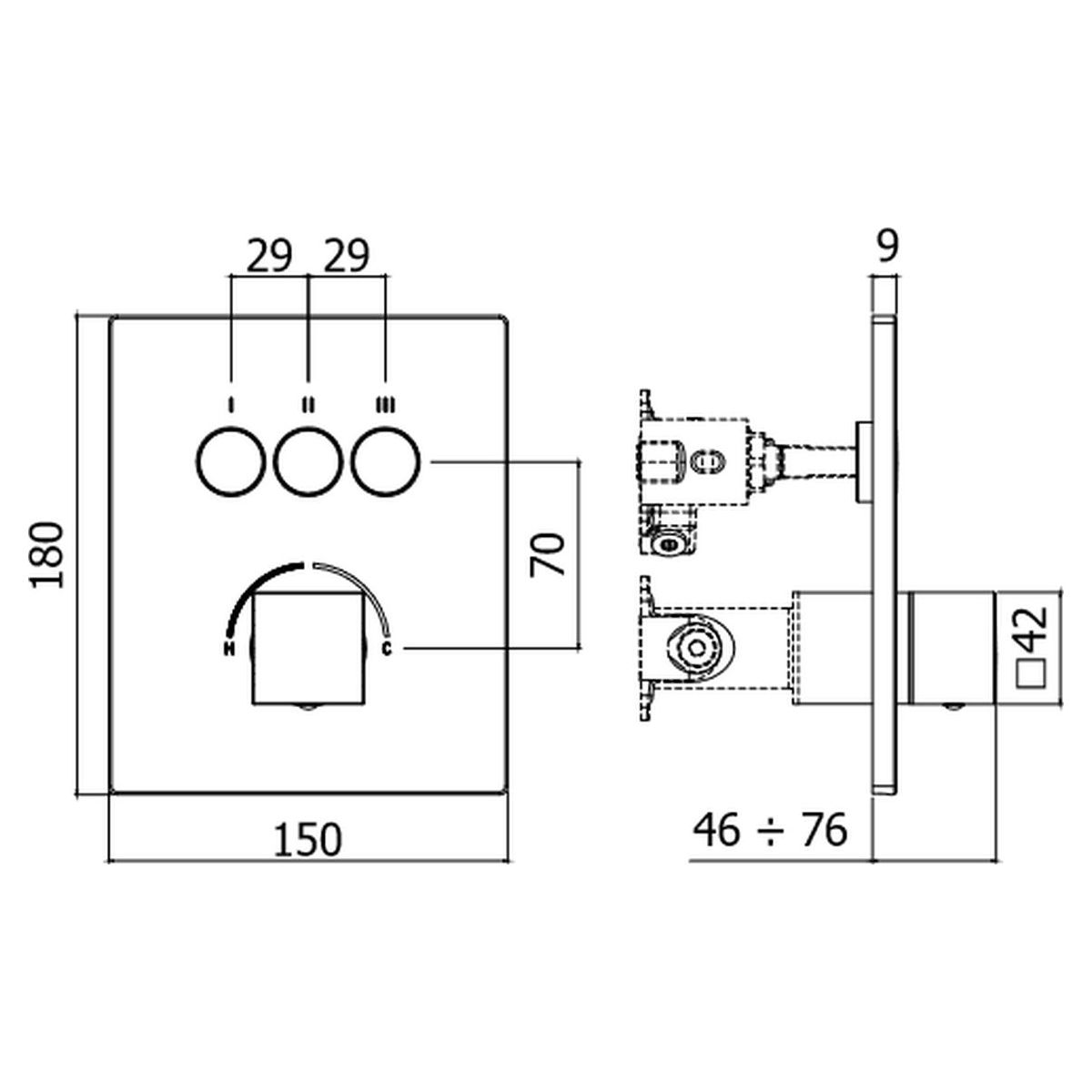 Paffoni Elle baterie cadă-duș ascuns crom CPM519CR