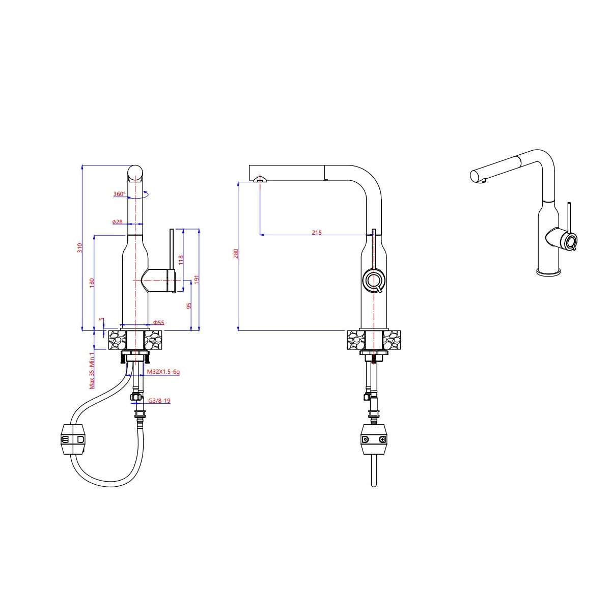 - 2 furtunuri de conectare G3/8 inch, lungime 40 cm