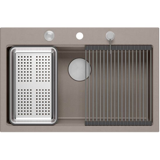 Marc Workstation GraniteQ - este o colecție pentru utilizatorii care așteaptă funcționalitate extinsă de la chiuveta lor. În cazul acestui model, datorită vasului extra-larg de 61 de litri, chiar și tăvile mari de cuptor pot fi clătite și spălate confortabil.