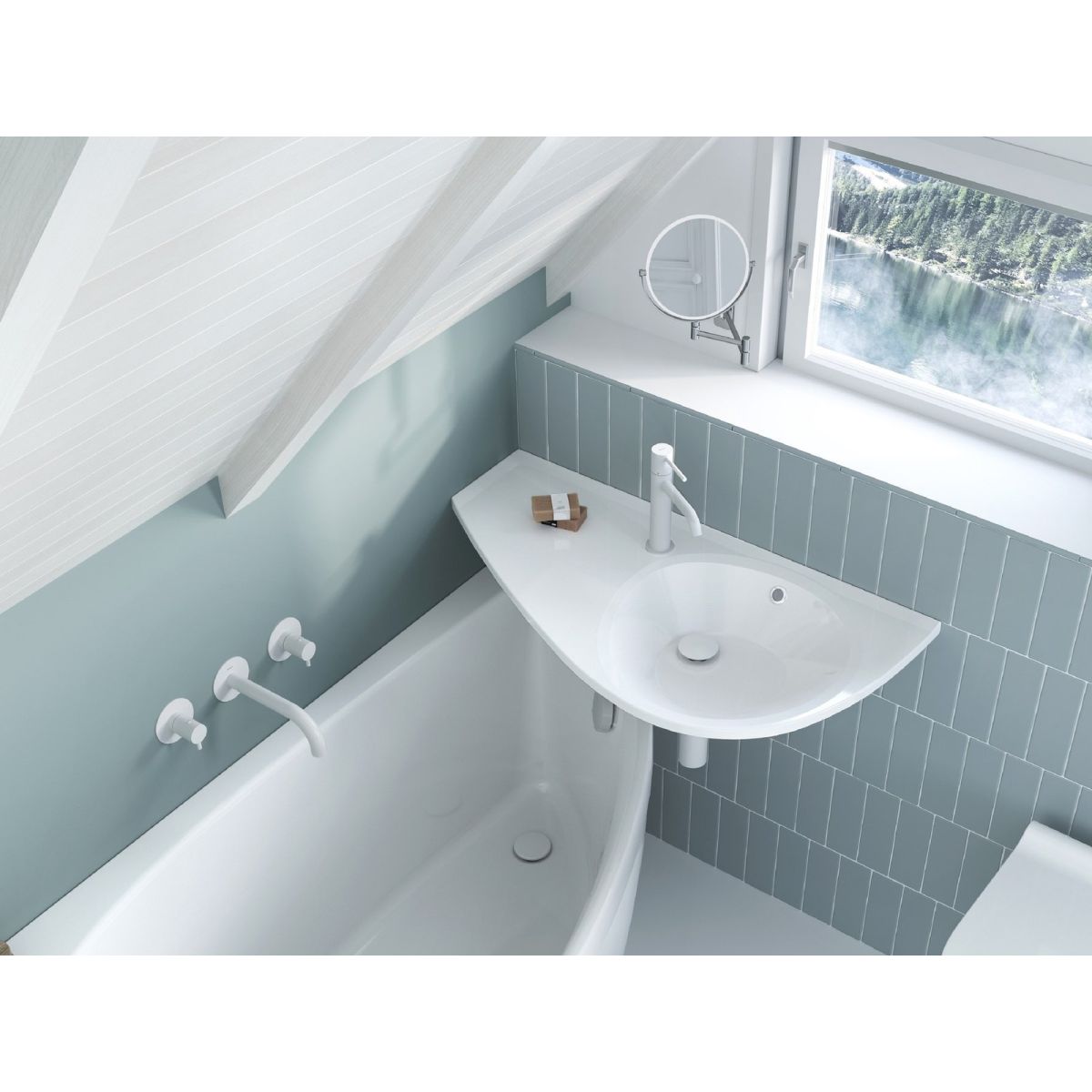Lavoarul Avocado este livrat cu un deversor. Acesta este montat pe perete, iar prin amplasarea sa peste partea mai îngustă a căzii de baie Avocado ocupă un spațiu minim. Pentru o soluție completă și compatibilitate stilistică în baie, vă recomandăm să combinați lavoarul cu alte produse din conceptul Avocado (cada Avocado, mixerul Ravak stand) și alte produse Ravak. Kitul de instalare (dibluri, șuruburi etc.), inclusiv capacul de revărsare, face parte din set.