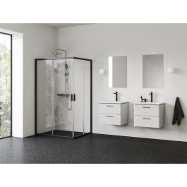 cabină de duș 1/2 colț Blix II în design negru cu umplutură din sticlă transparentă cu strat de protecție Ravak AntiCalc®. Sistem de deschidere glisantă.