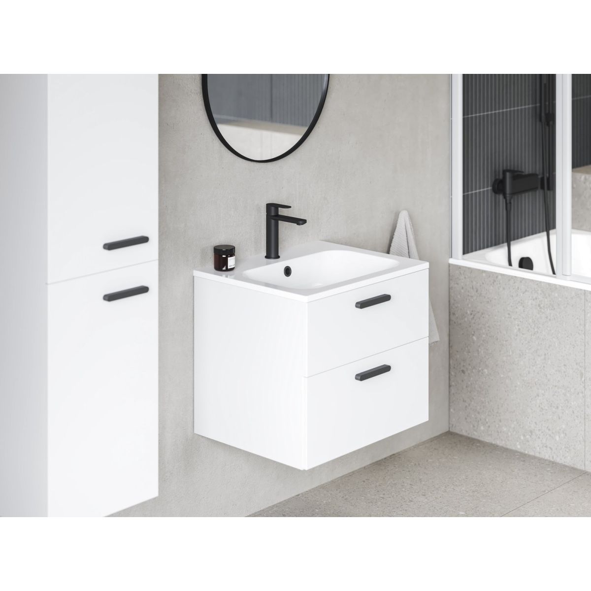 Dulap lavoar SD Chrome II în design alb. Mânere în negru.