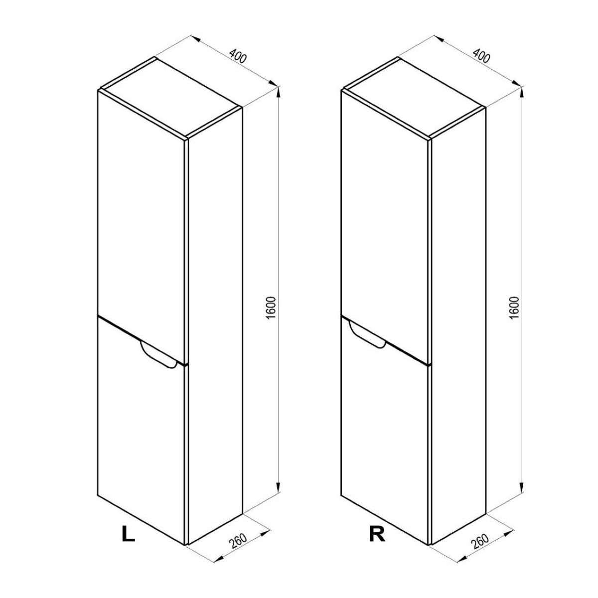 Piedestalul de baie este echipat cu rafturi reglabile în partea superioară și inferioară. Versiunea stânga sau dreapta este determinată de partea pe care sunt amplasate balamalele. Balamalele de înaltă calitate asigură închiderea lentă a ușii. Se livrează asamblat, inclusiv kit de asamblare (șuruburi, balamale, dopuri). Dulapul este montat pe perete.