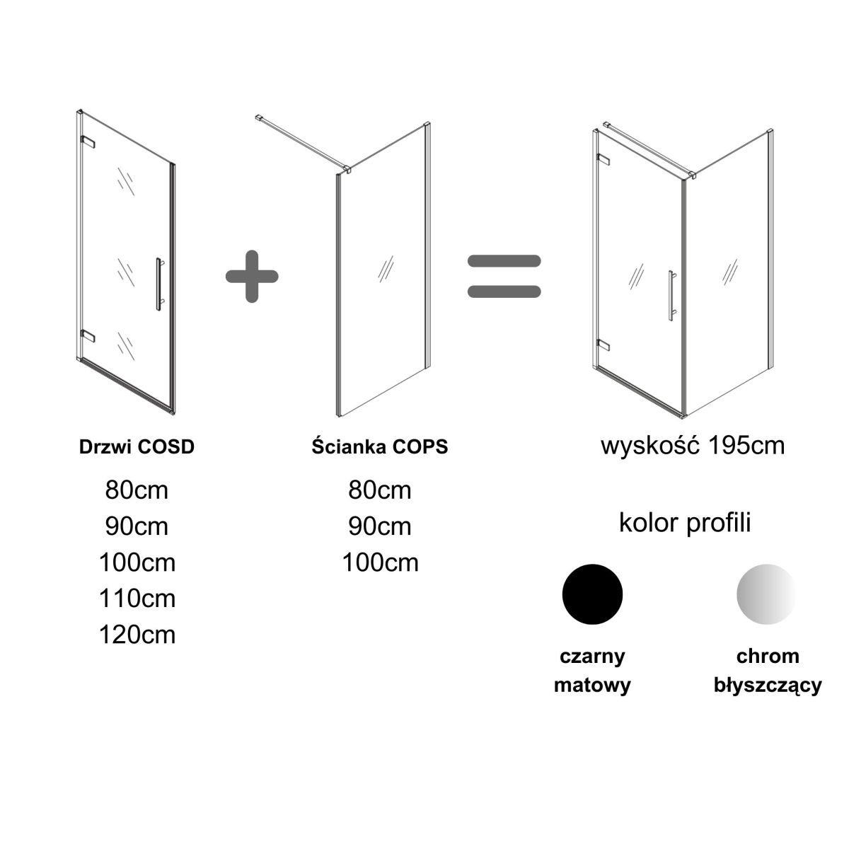 - ușa poate fi combinată cu peretele fix COPS (80,90,100) pentru a crea o cabină de duș, peretele trebuie achiziționat separat!