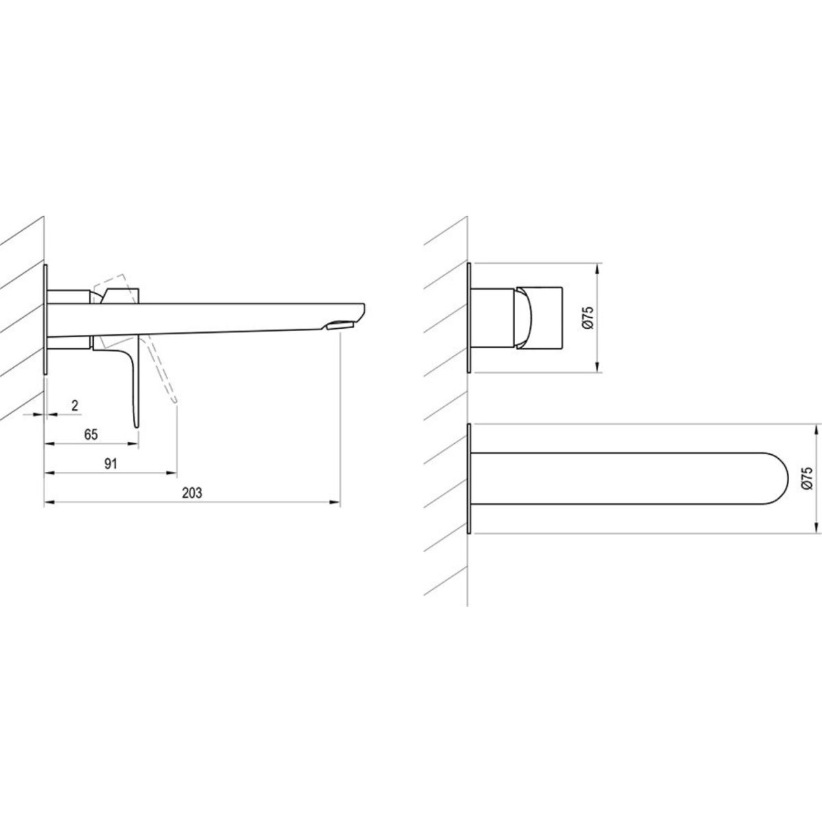 - lungimea gura de scurgere: 203 mm