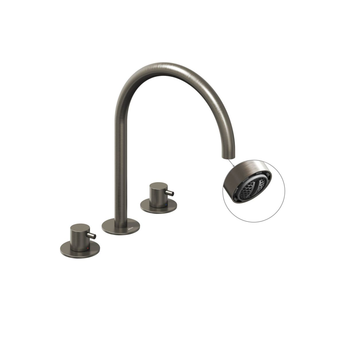 Robinet pentru chiuvetă cu trei găuri Espirit, fără scurgere pop-up. Finisaj grafit periat. Cu aerator încorporat cu funcție EcoFlow.