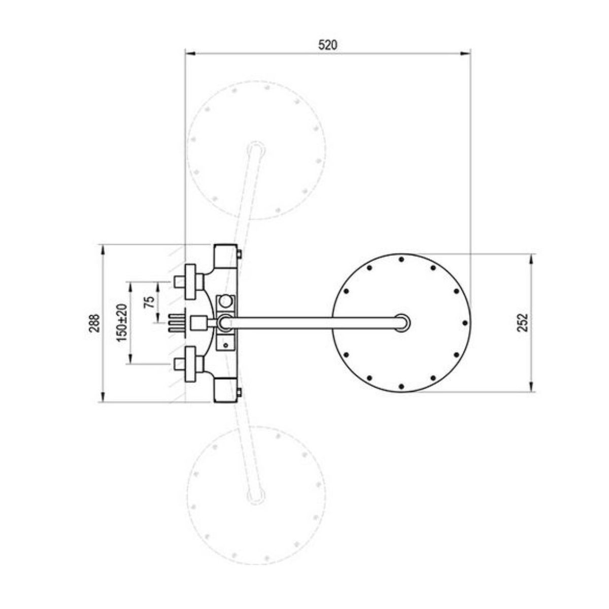 - tipul accesoriilor: cap de duș rotund 25 cm; cap de duș cu o singură funcție. Capul de duș poate fi rotit și lateral