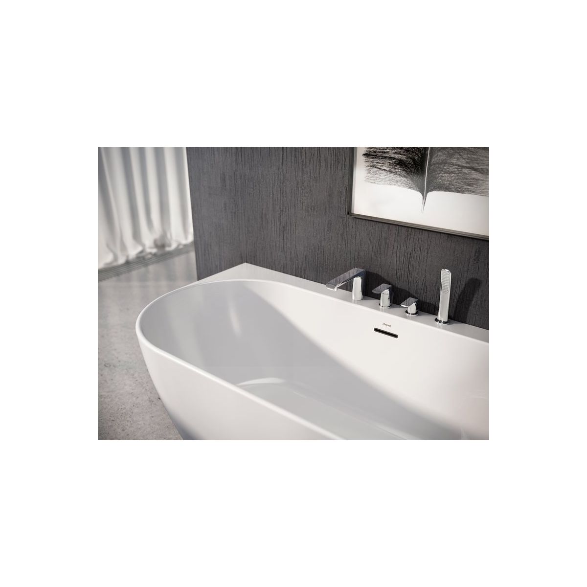 Dedicat instalării pe marginea căzii de baie. Produsul constă din patru elemente cu design asortat. Linia treptată și aparent curgătoare a gurii de scurgere creează o armonie perfectă cu jetul de apă. Robinetul cu comandă sensibilă la atingere asigură reglarea perfectă a jetului de apă și a temperaturii. Al treilea element se ocupă în mod fiabil de comutarea confortabilă între gura de scurgere și duș. Ultimul element al robinetului este mânerul de duș detașabil, care impresionează prin forma sa la modă.