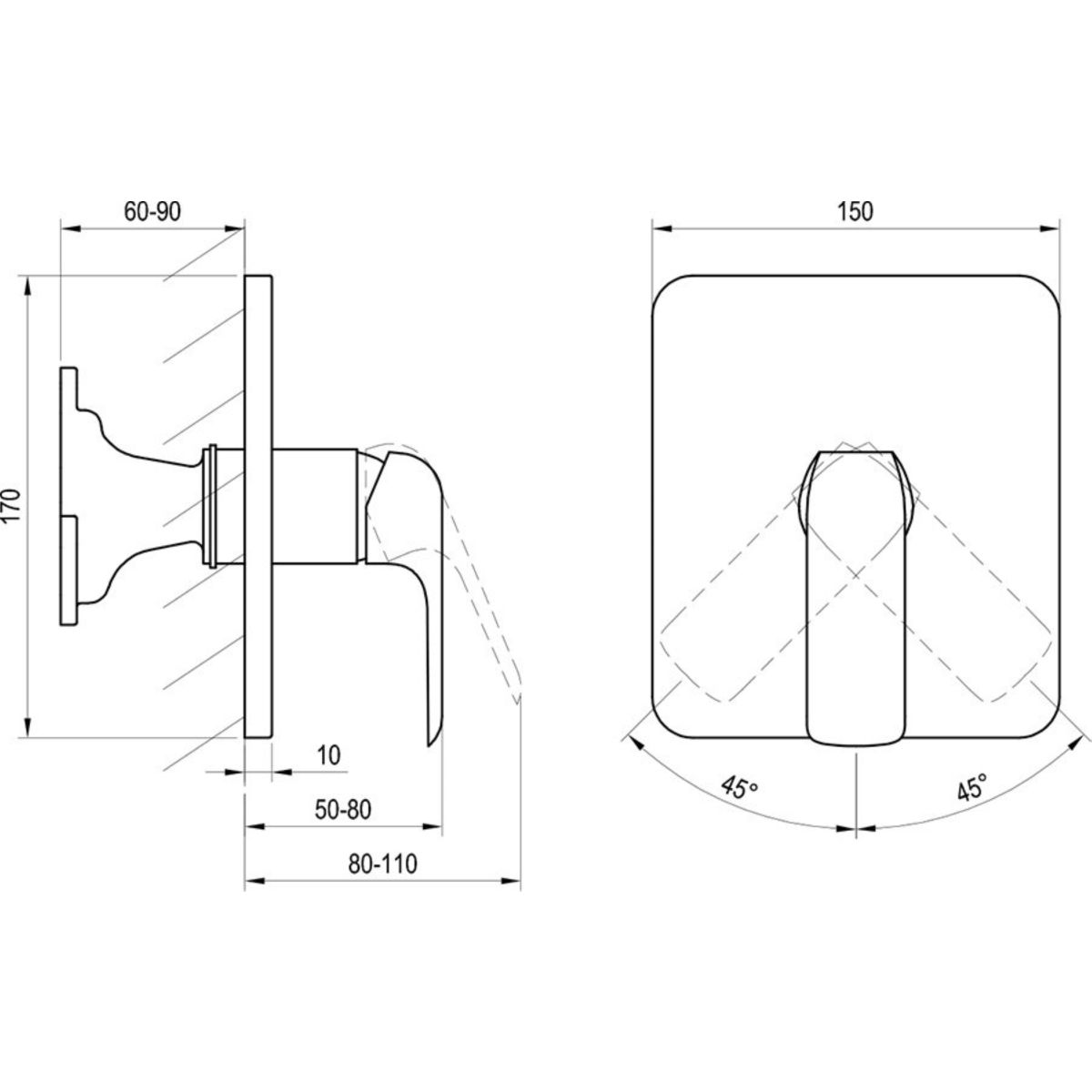 - recomandat: pentru cabine de duș cu un singur mâner sau căzi de baie cu un duș cu revărsare fără posibilitatea unei conexiuni de duș