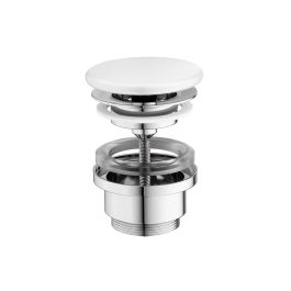 Dop plat de lavoar cu cap ciupercă din ceramică în alb lucios. Conceput pentru chiuvete fără revărsare.