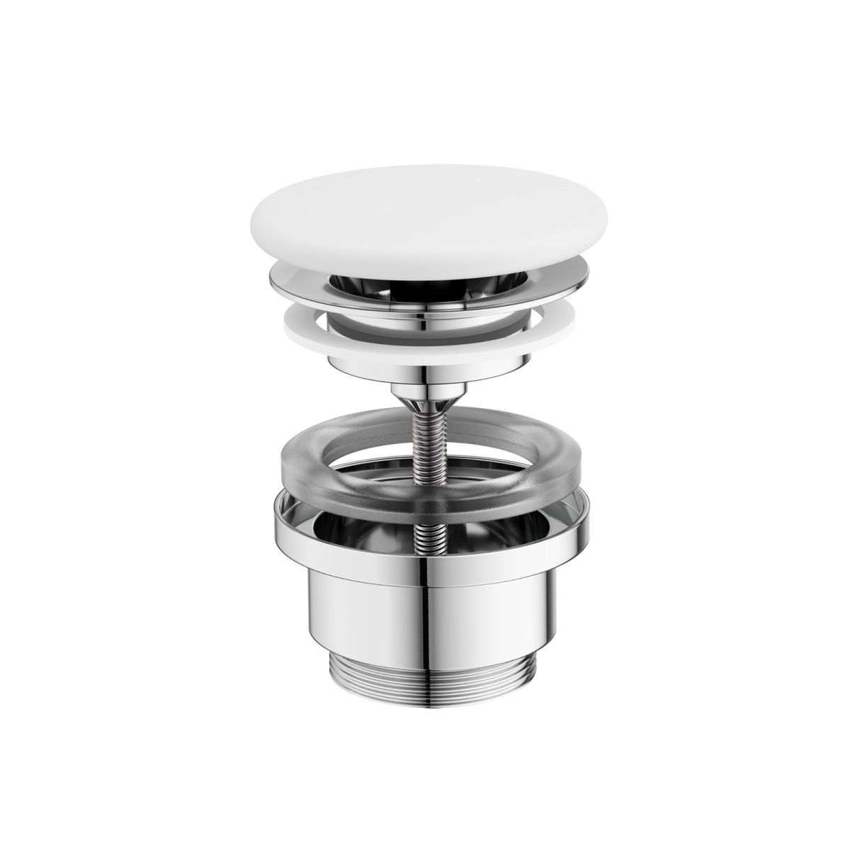 Dop de lavoar Flat cu cap ciupercă ceramic în alb mat. Conceput pentru chiuvete fără revărsare.