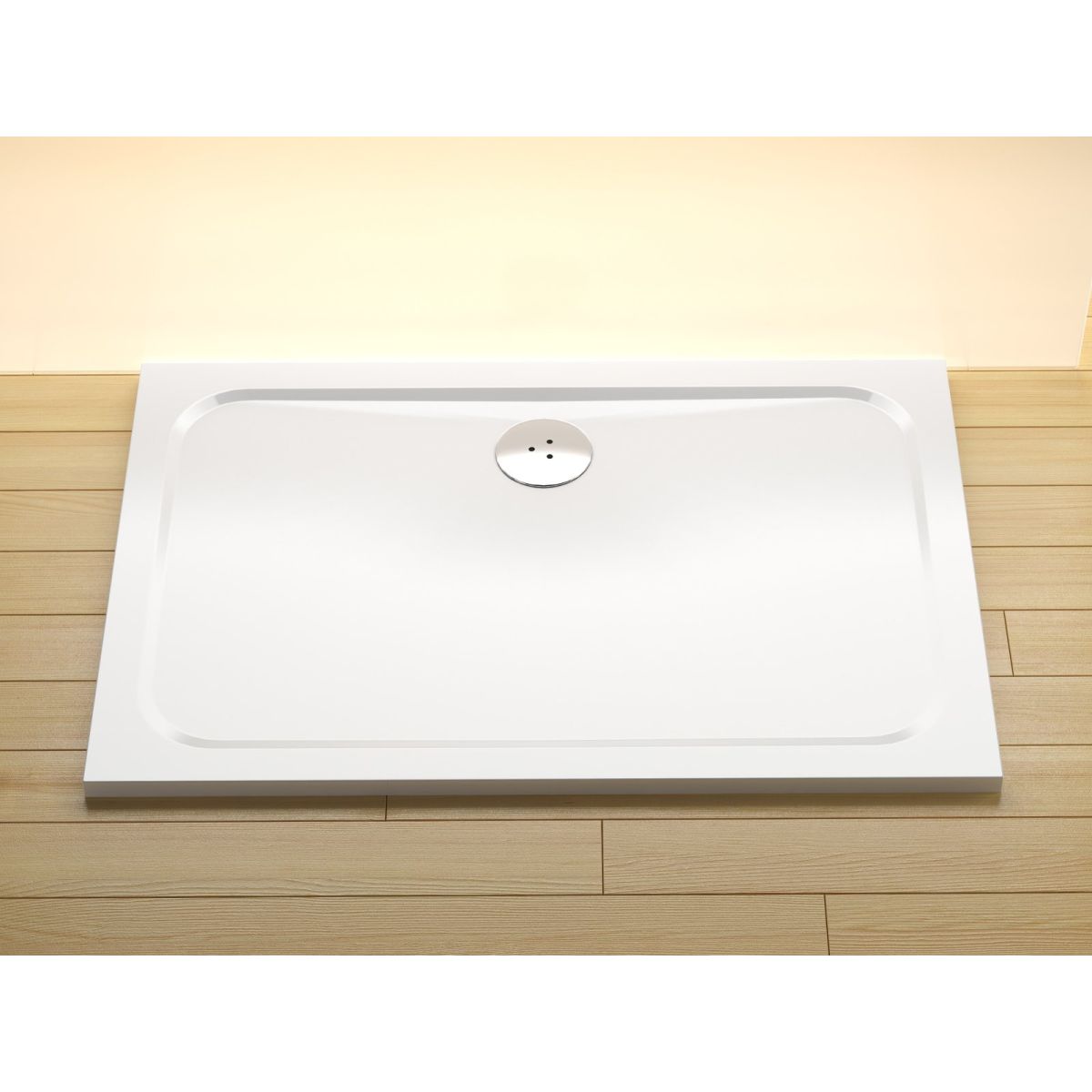 Tavă de duș Giant Pro Chrome dreptunghiulară din marmură turnată în alb.Un plus estetic excepțional pentru cabina dvs. de duș. Tavă de duș joasă cu fund neted pentru curățare ușoară. Material de înaltă calitate pentru o durată lungă de viață și satisfacție la duș.