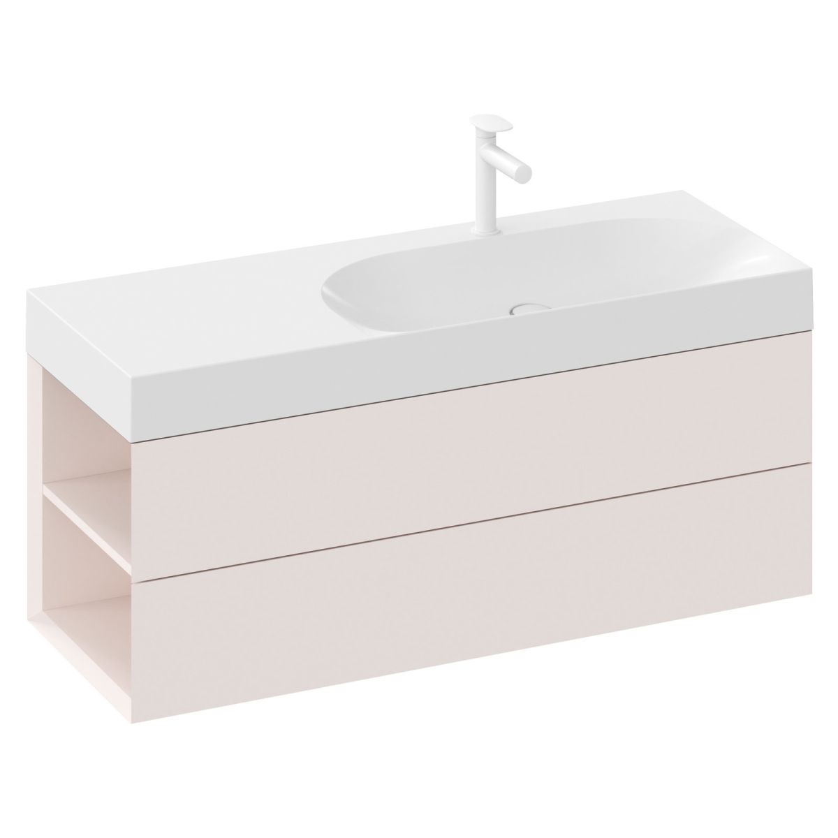 Lavoar Lite 120/80 L cu spațiu de depozitare în stânga. Bazinul nu este echipat cu revărsare, astfel încât, pentru a preveni revărsarea, trebuie utilizat un suport fix pentru bazin. Bazinul are un orificiu pre-perforat pentru un mixer de bazin în picioare. Este inclus un kit de asamblare (pini de conectare, șuruburi etc.). Acesta poate fi montat pe perete sau completat cu un dulap pentru bazin SD Lite 120 sau SD Lite 120 L.