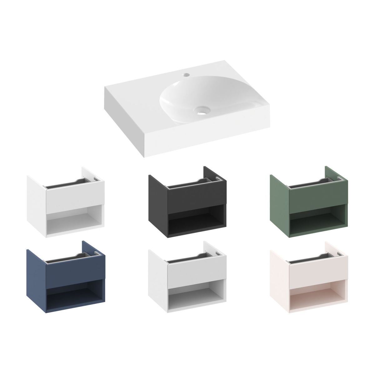 Chiuveta Lite 60/45 L cu spațiu de depozitare în stânga. Bazinul nu este echipat cu revărsare, astfel încât, pentru a preveni revărsarea, trebuie utilizat un suport fix pentru bazin. Bazinul are un orificiu pre-perforat pentru un mixer de bazin în picioare. Este inclus un kit de asamblare (pini de conectare, șuruburi etc.). Acesta poate fi montat pe perete sau completat cu un dulap pentru lavoar SD Lite 60.