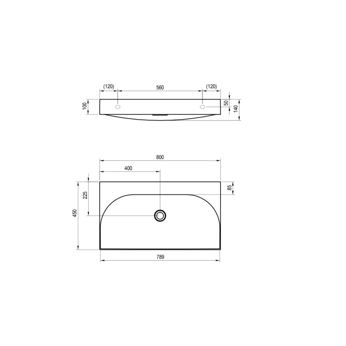 Chiuvetă de mobilier Lite din marmură turnată pentru montare pe perete sau încastrată într-un dulap de perete, fără revărsare. Finisaj alb. Fără deschidere - pentru a fi combinat cu un mixer pentru bazin ascuns.
