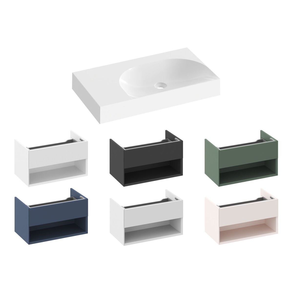 Lavoar Lite 80/60 L cu spațiu de depozitare în stânga. Lavoarul nu este echipat cu revărsare, astfel încât trebuie utilizat un dop fix de lavoar pentru a preveni revărsarea. Chiuveta este proiectată pentru a fi combinată cu un mixer încastrat pentru chiuvetă. Este inclus un kit de asamblare (pini de conectare, șuruburi etc.). Acesta poate fi montat pe perete sau completat cu un dulap pentru bazin SD Lite 80 sau SD Lite 80 L.
