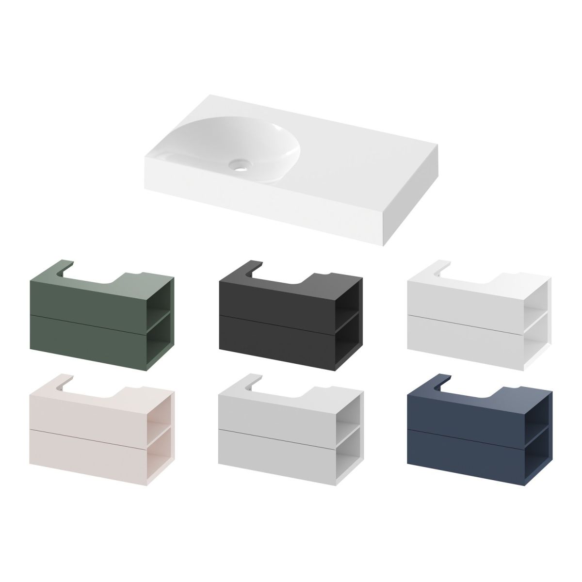 Chiuvetă de mobilier din marmură turnată Lite pentru montare pe perete sau încastrată într-un dulap de perete, fără revărsare. Finisaj alb. Fără deschidere - pentru a fi combinat cu un mixer de bazin ascuns.