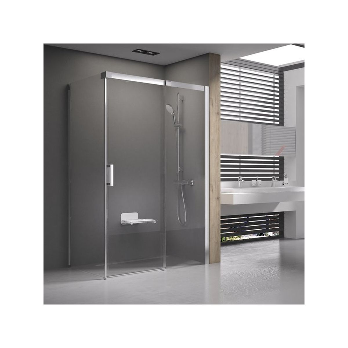 - pentru a fi instalat pe o tavă de duș sau direct pe podea, cu o scurgere sau un grătar integrat