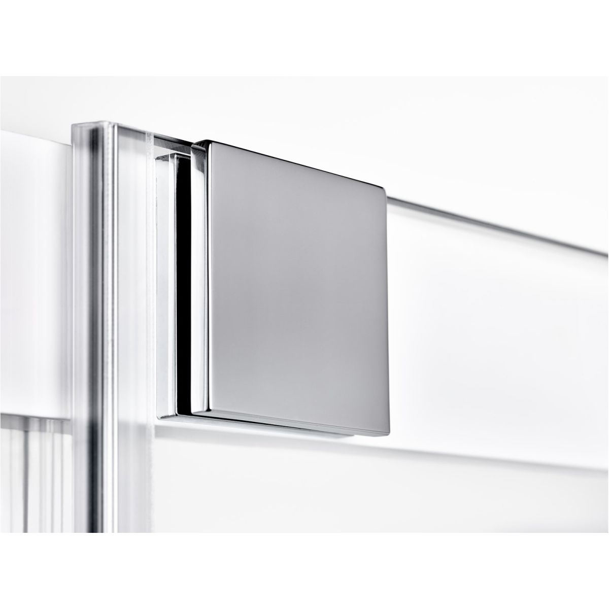 Ușă de duș Matrix din două părți, cu finisaj cromat lucios, cu umplutură din sticlă transparentă și strat protector Ravak AntiCalc®. Sistem de deschidere glisant. Versiune pentru dreapta.