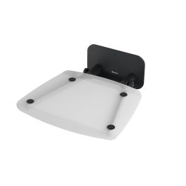 Scaun de duș pliabil Ovo B II. Construcție neagră cu scaun transparent transparent. Formă pătrată.