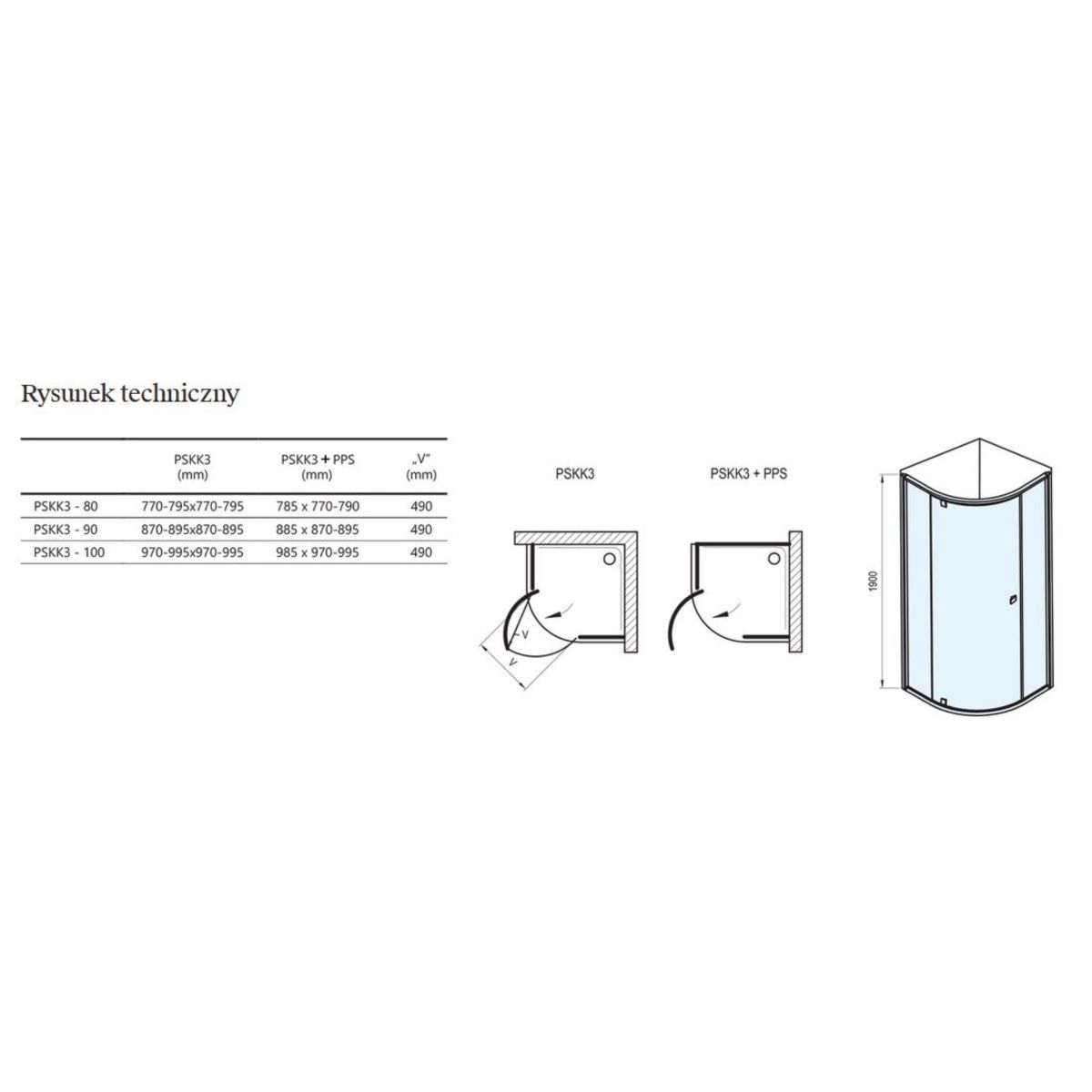 Produsul este format din două părți fixe și o parte curbată din sticlă, care formează o ușă pivotantă. Prin rotirea produsului cu 180° în timpul instalării, puteți alege între deschiderea ușii spre stânga sau spre dreapta. Instalarea într-un colț placat cu gresie al băii pe cădițele de duș RAVAK cu o rază de R – 500 mm sau direct pe podea cu un canal de scurgere liniar încorporat sau grătar de scurgere. Dacă nu aveți un colț liber în baie, puteți completa cabina cu un perete fix PPS și o puteți instala pe perete. Folosind profilele de extensie PNPS, produsul poate fi extins cu până la 4 cm pe fiecare parte.