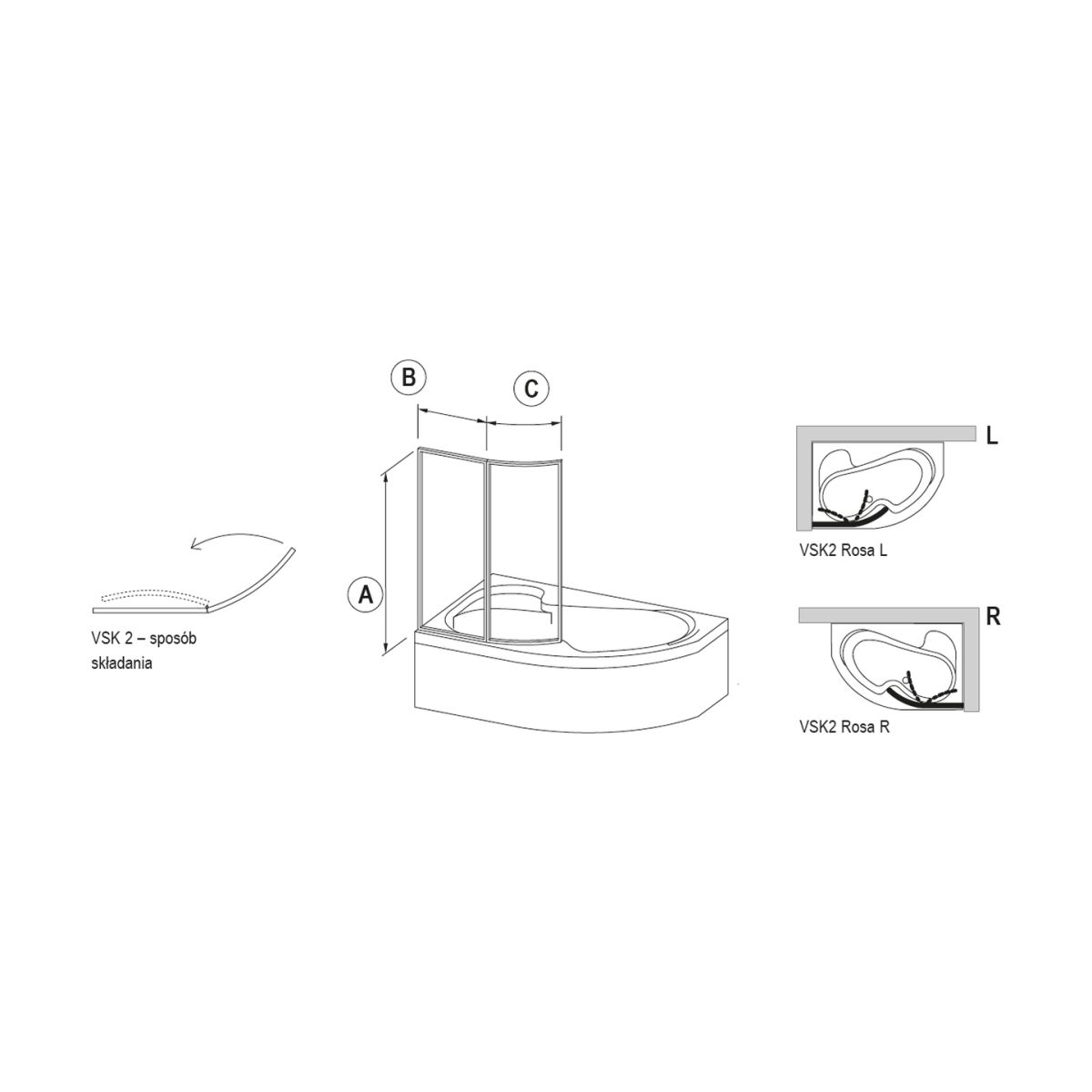 - pentru căzile de baie Rosa I, Rosa II și Rosa 95 în funcție de dimensiuni și variante