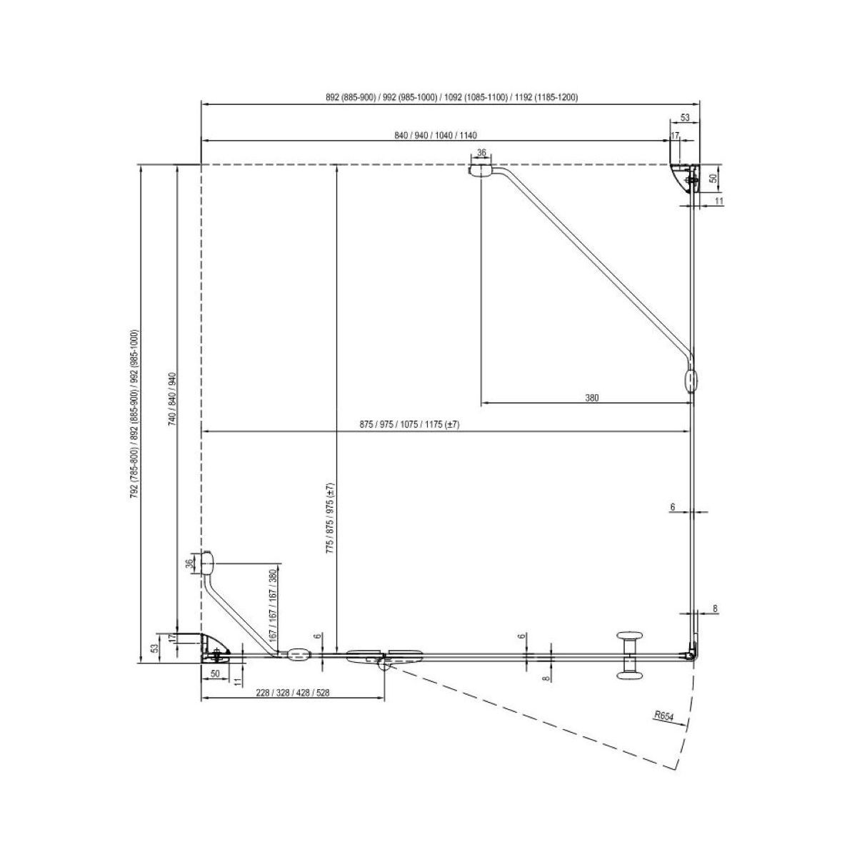 Cabina de duș SmartLine se poate adapta la suprafețe inegale. Are un profil reglabil care permite îngustarea sau lărgirea cabinei cu până la 15 milimetri.