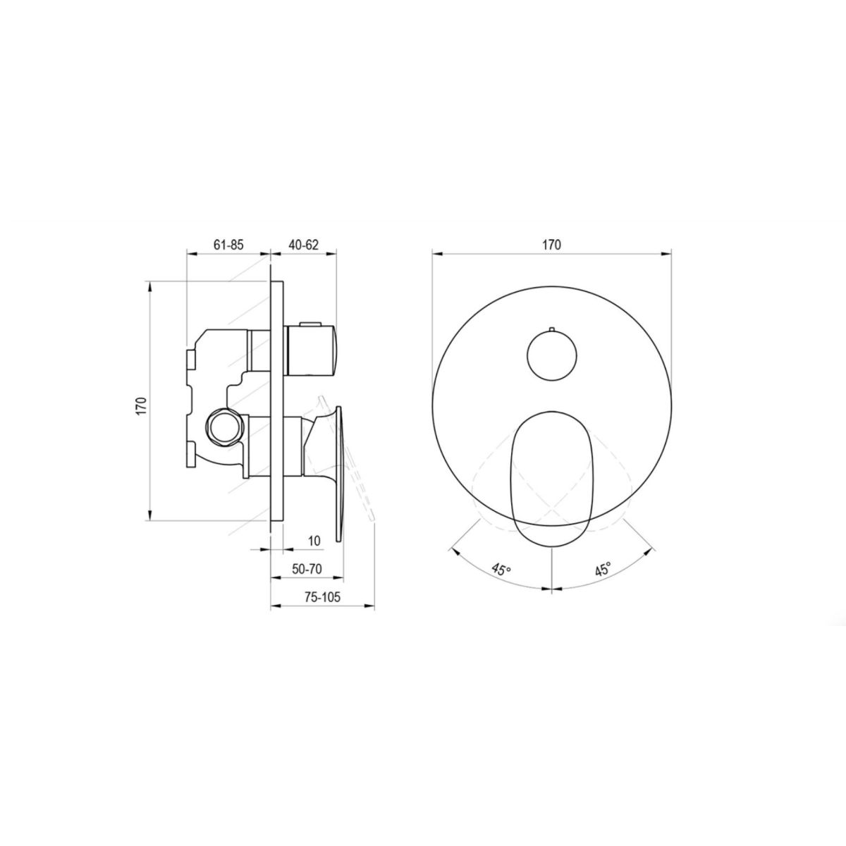 - aplicare: pentru căzi de baie cu revărsare de duș deasupra capului sau pentru cabine de duș cu duș de ploaie și duș manual