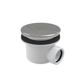 Capcană pentru tavă de duș cu capac din plastic în finisaj crom lucios.