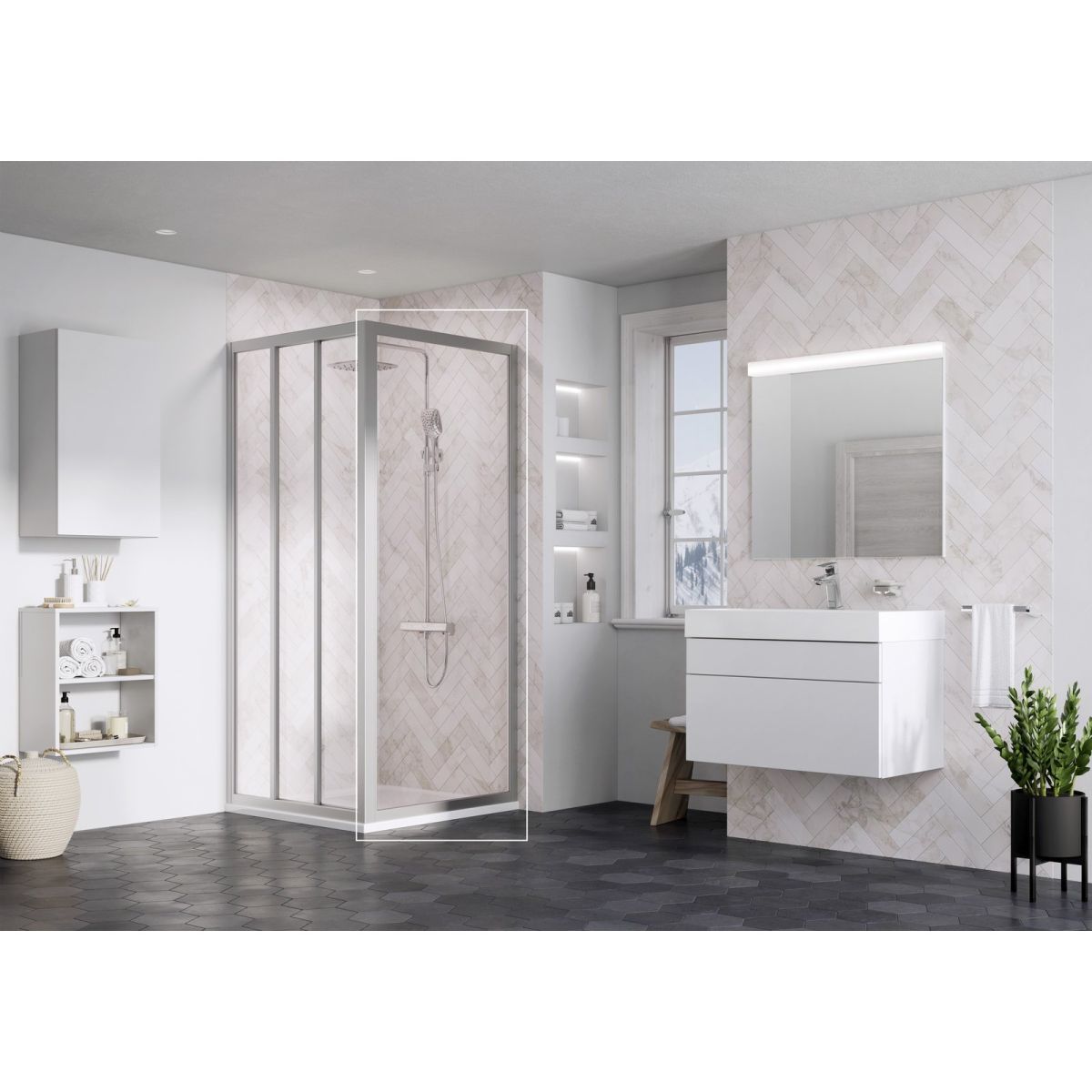 Produsul este format dintr-o singură parte fixă și este conceput pentru a fi combinat cu o ușă de duș (nu este un produs independent). Fotografia prezintă soluția completă.