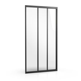Ușă de duș Supernova din trei părți, cu finisaj negru, cu geam transparent și strat protector Ravak AntiCalc®. Sistem de deschidere glisant. Produsul nu are versiune dreapta sau stânga.